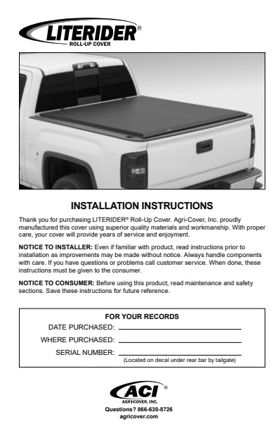 Attractive and affordable, the LITERIDER(R) Roll-Up Cover is the storage solution for you. The exclusively patented style adds the finishing touch to your truck box while the versatile and functional performance maximizes the utility of your pickup. From the increased capacity design to the easy one person operation, carry more gear under this durable, long-lasting tonneau cover. See the quality, feel the difference, LITERIDER(R) Roll-Up Covers are crafted for great ambitions.