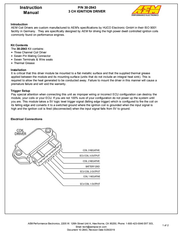 Swapping to a coil-on-plug ignition set-up can eliminate dwell time issues that can be problematic in stock ignition systems, and AEM's Ignition Coil Drivers are the most affordable way to drive coils in a coil on plug set-up. AEM's Ignition Coil Drivers are designed for driving high-power, dwell-controlled two-wire ("dumb") coils commonly found on performance engines. Our Three- and Four-Channel igniter coil versions can be used as a replacement for a stock coil driver or when converting to coil-on-plug in engines that do not need the extra spark energy from a CDI, or do not have the mounting space for a CDI like on ATVs, snowmobiles, motorcycles, and other Powersports applications.