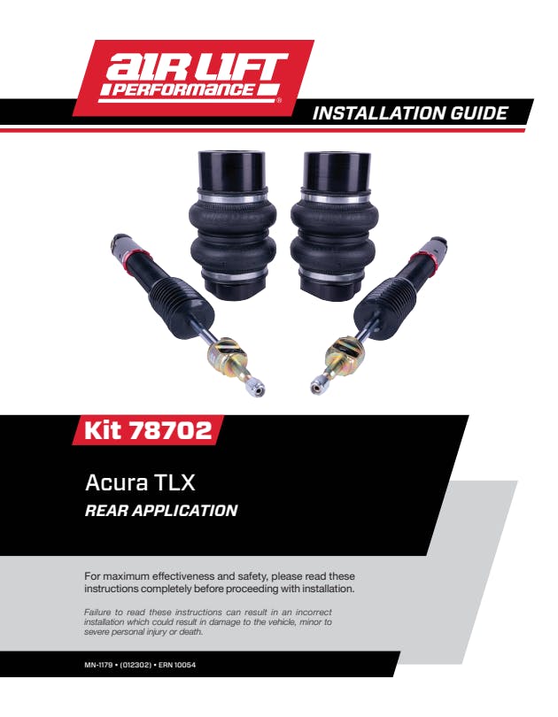 Revolutionize your Acura TLX experience with Air Lift Performance! Our rear kit will give your vehicle the maximum drop, superior handling, sharp steering response, and a comfortable ride, backed by Air Lift’s manufacturer’s warranty.