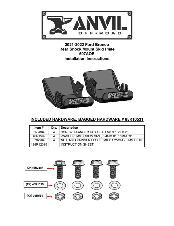 Anvil off-road 2021+ Ford Bronco Rear Shock Mount Skid Plates