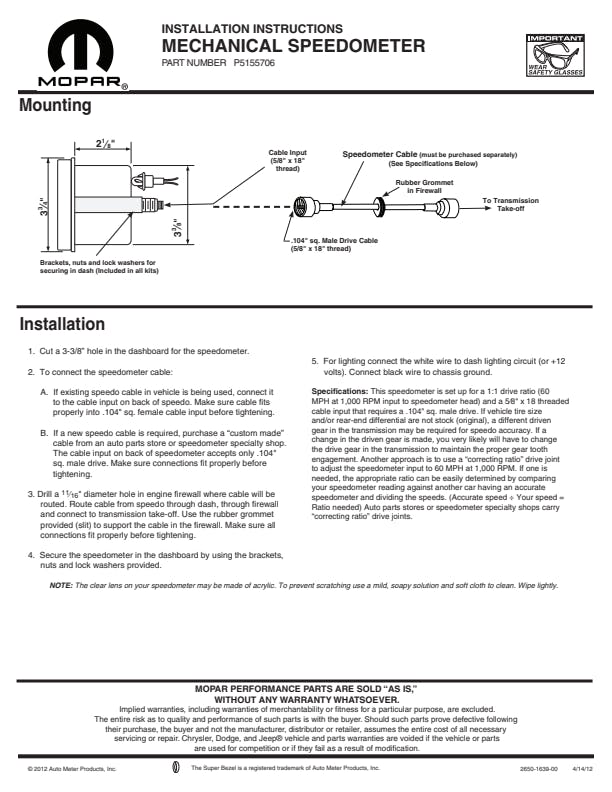 Proving a top quality Speedometer doesn't have to cost a fortune, AutoMeter's Mechanical Speedometers are a great solution for any vehicle with a cable drive transmission. Using a 5/8 in.-18 fitting on the back and calibrated for 1000 rpm at 60 mph, these simple, accurate and durable units have been time tested to provide great performance and exceptional value.
