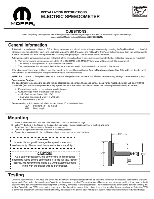 3-3/8in. SPEEDO; 160 MPH; IN-DASH; LCD; ELEC; MOPAR CLASSIC