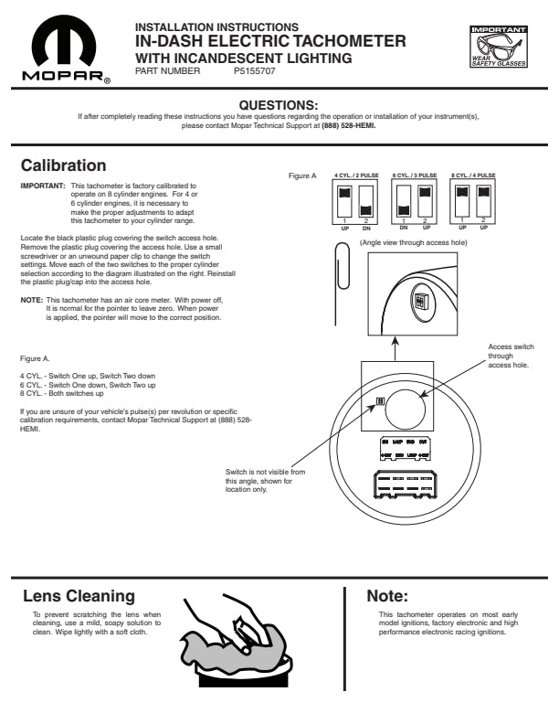 3-3/8in. TACH; 8;000 RPM; 4;6;8 CYL; IN-DASH; MOPAR CLASSIC