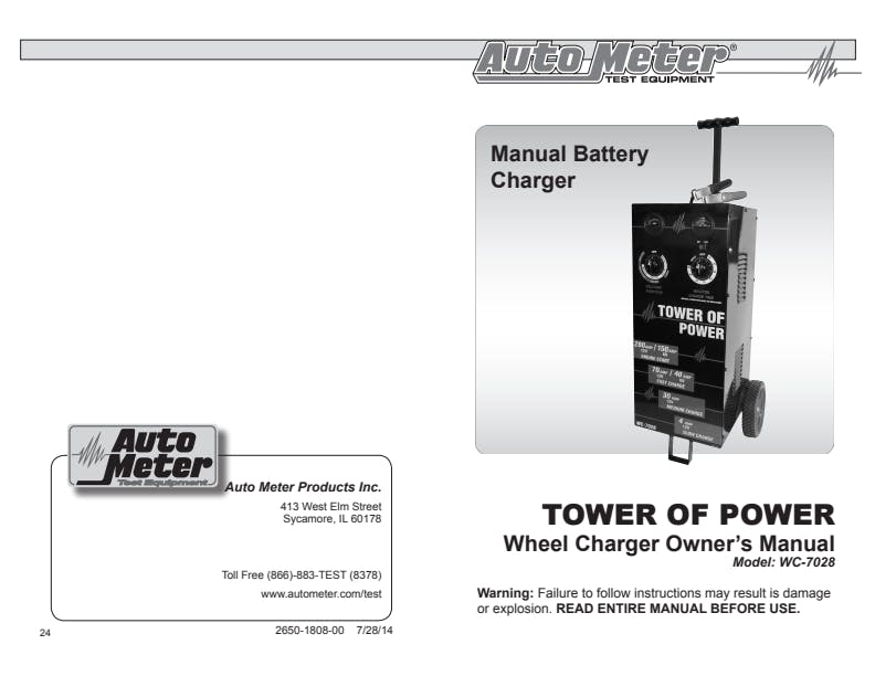 The Tower of Power is one of the most advanced wheeled battery chargers on the market today. The tall, slender design places controls at an easy to adjust level that allows the charger to fit easily between cars and lifts in the shop. We bulked up the internals and included an ultra heavy-duty transformer with 100% copper windings providing an uninterrupted high current flow for optimal performance and efficiency. The Tower of Power utilizes 2-gauge solid copper wiring and high quality, heavy duty clamps for optimal conductivity and extended service life. Large wheels and rugged rubber tires were designed to easily roll over air hoses or gravel. Precise, easy to read gauges insure accurate results during the testing process. Where other charges fall short, the Tower of Power succeeds.