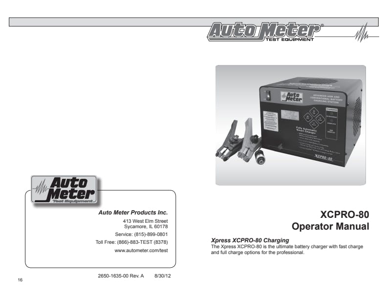 AutoMeters new fully automatic fast and full charger. This charger has fully controlled current limiting from 1 to 80 amperes. The 4 channels are put into a constant current/increasing voltage mode for the bulk of the charge and a constant voltage/decreasing current for the absorption charge mode. Features AutoMeters Fast Charging technology - Enables operators to quickly and safely bring most good automotive batteries up to 80 percent of their stated charge in 60 minutes or less; AutoMeter Fast Charge technology saves operators and customers time and money.