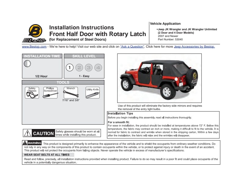Half Doors put you in touch with the great outdoors without exposing yourself to gravel, grit and puddle splash. Kits include pair of lower half doors complete with Rotary or Paddle Handle kits.
