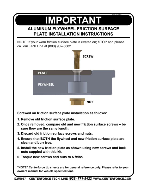 - Use with Aluminum Flywheels and LMC Clutches.;