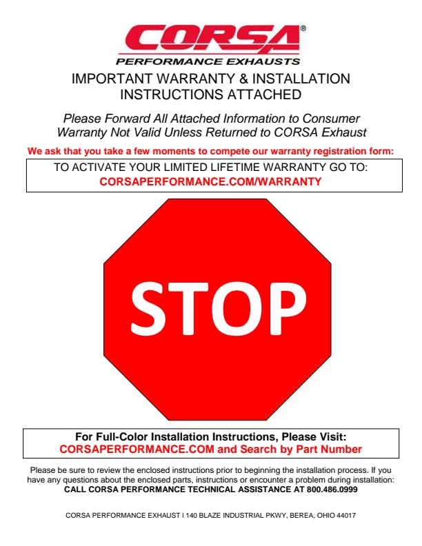 CORSA's Patented Reflective Sound Cancellation(R) (RSC) Technology allows acoustic engineers to create a drone free exhaust sound, styled specifically to fit the personality of your vehicle. Each system is designed to increase vehicle performance, deliver an AGGRESSIVE SOUND under acceleration and a DRONE-FREE EXPERIENCE during cruise. Performance gains are not affected by sound choice.