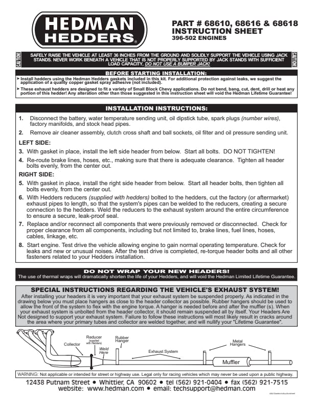 headers, gaskets (when applicable), 3-bolt exhaust adapters, hardware, headers, gaskets (when applicable), 3-bolt exhaust adapters, hardware, One pair of headers, head flange gaskets, collector flange gaskets (when applicable), 3-bolt exhaust adapters, mounting hardware |