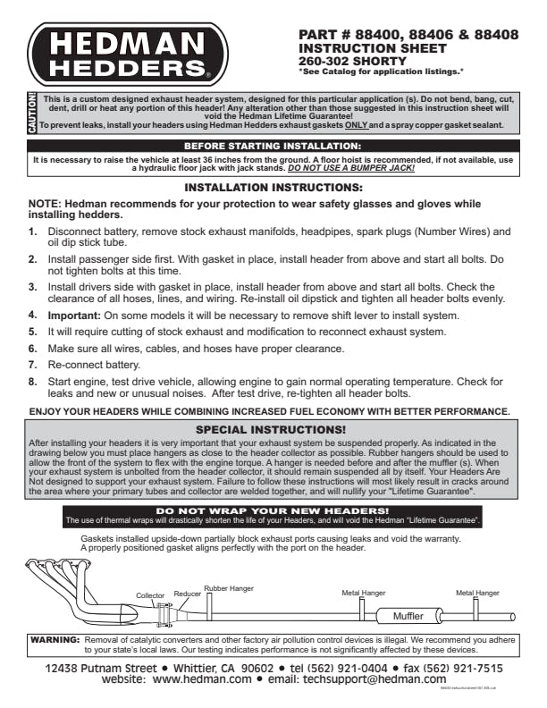 Hedman Hedders is so confident in the quality of its headers that these headers are factory backed by a Limited Lifetime Warranty. These headers have a high temperature, POLISHED-SILVER ceramic finish that resists corrosion, and can withstand temperatures up to 1400 degree F. This finish is covered by a 5-year factory warranty, in addition to Hedman's standard lifetime header warranty.