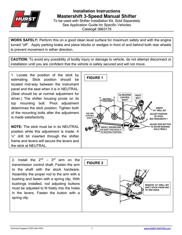 This Mastershift shifter will require Hurst Installation kit 3677640 (not included) for the above listed applications.