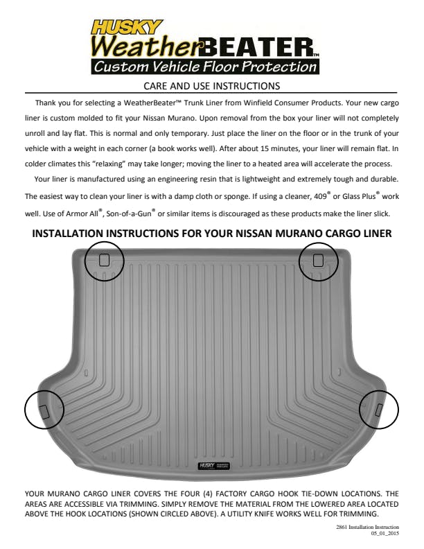 - WeatherBeater(TM) Liners offer protection that extends all the way to your rear seats. So go ahead, lift the seats and leave them up, load after load. Husky's got your floors, and your back, no matter what the road brings your way.