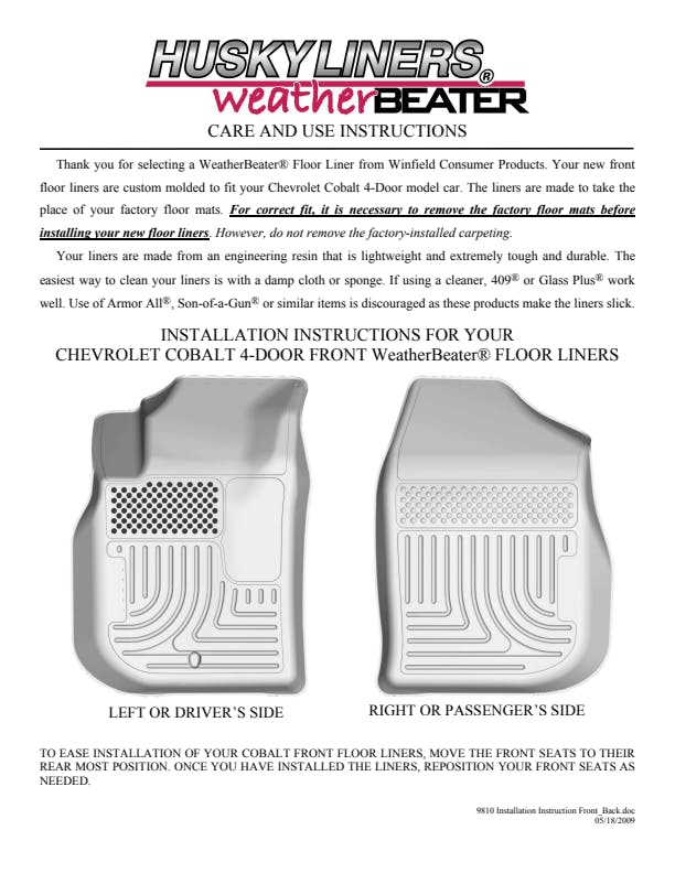 - WeatherBeater(TM) Liners offer protection that extends all the way to your rear seats. So go ahead, lift the seats and leave them up, load after load. Husky's got your floors, and your back, no matter what the road brings your way.