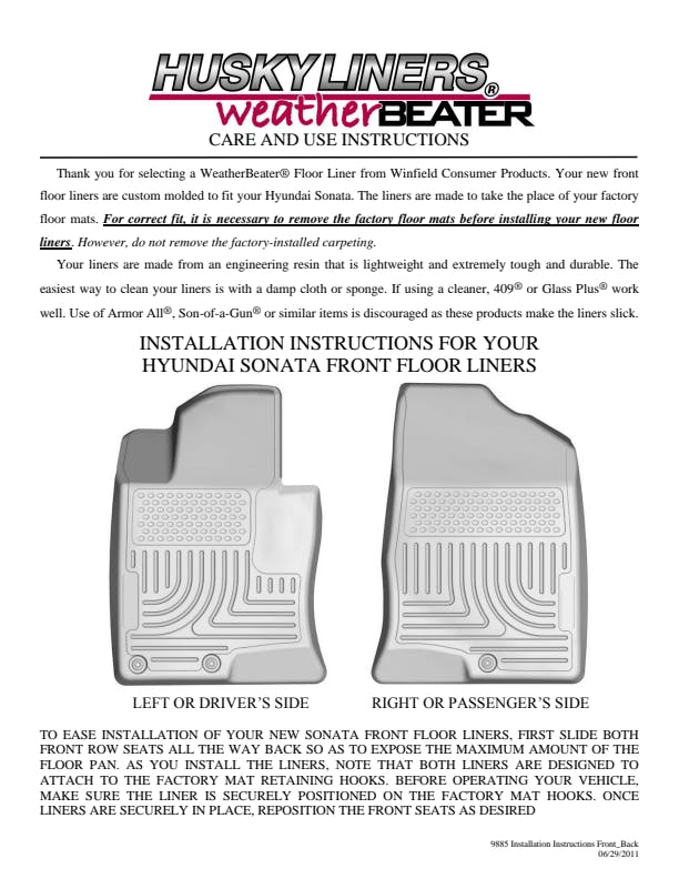 - WeatherBeater(TM) Liners offer protection that extends all the way to your rear seats. So go ahead, lift the seats and leave them up, load after load. Husky's got your floors, and your back, no matter what the road brings your way.