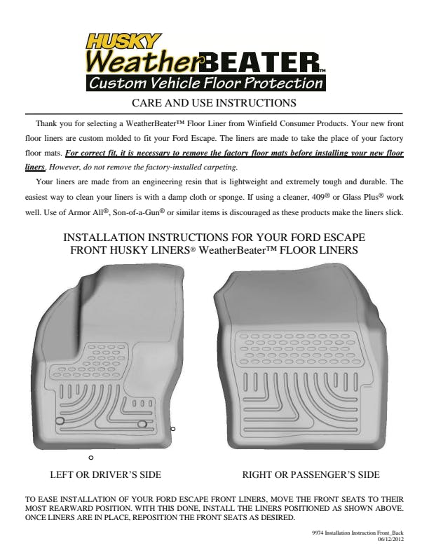 The original all-weather liner is ready, come hell or hot coffee. The Weatherbeater?s construction is a no-slip zone with zero edge curl, and its Stay Put Nibs keep it firmly anchored underfoot. It stands up to chemicals like gas, oil and battery acid, and stays tough and flexible, even under extreme temperatures. Its laser-scanned, FormFit Design? gives your truck, van or SUV an ultra-clean look with easy cleanup to match, while its patented, FormFit Edge? keeps spills contained, carpets unstained. It?s unbeatable Husky protection for life, warrantied the same. Proudly made in the USA.