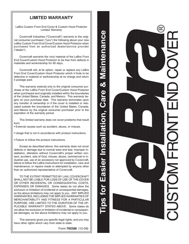 Each LeBra is specifically designed to your exact vehicle model. If your model has fog lights, special air-intakes or even pop-up headlights there is a LeBra for you.