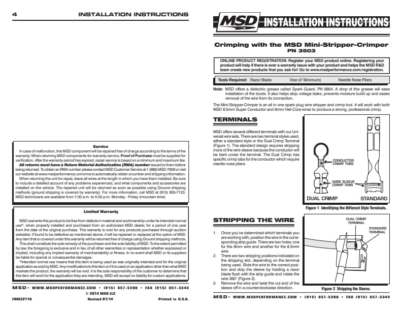 Our Universal spark plug wire sets come with the spark plug terminal and boot installed with the other end open. Distributor cap boots and terminals are included so you can cut the wire to the desired length, then install the terminal with the supplied Mini-Stripper-Crimper. It's a little more work, but in the end it will be worth it.