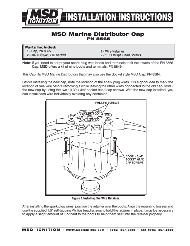 MSD molds our most popular V8 distributor caps in-house. These caps are injection molded from DuPont® Rynite material and feature spark plug-style terminals. These terminals offer improved locking connections and the Rynite material is extremely strong with excellent dielectric properties. This cap comes with an optional wire retainer to lock the wires in place.