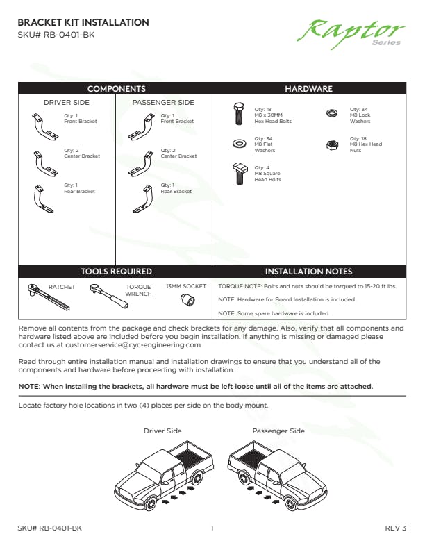 Raptor Series Sport Step Running Boards have a slim design that offers higher clearance and an aggressive look! There are punched holes along the entire board for drainage of debris. Their lightweight, corrosion-resistant aircraft-grade aluminum construction with a durable black textured finish provides strength without added weight. The kit includes driver and passenger boards, brackets, and hardware.