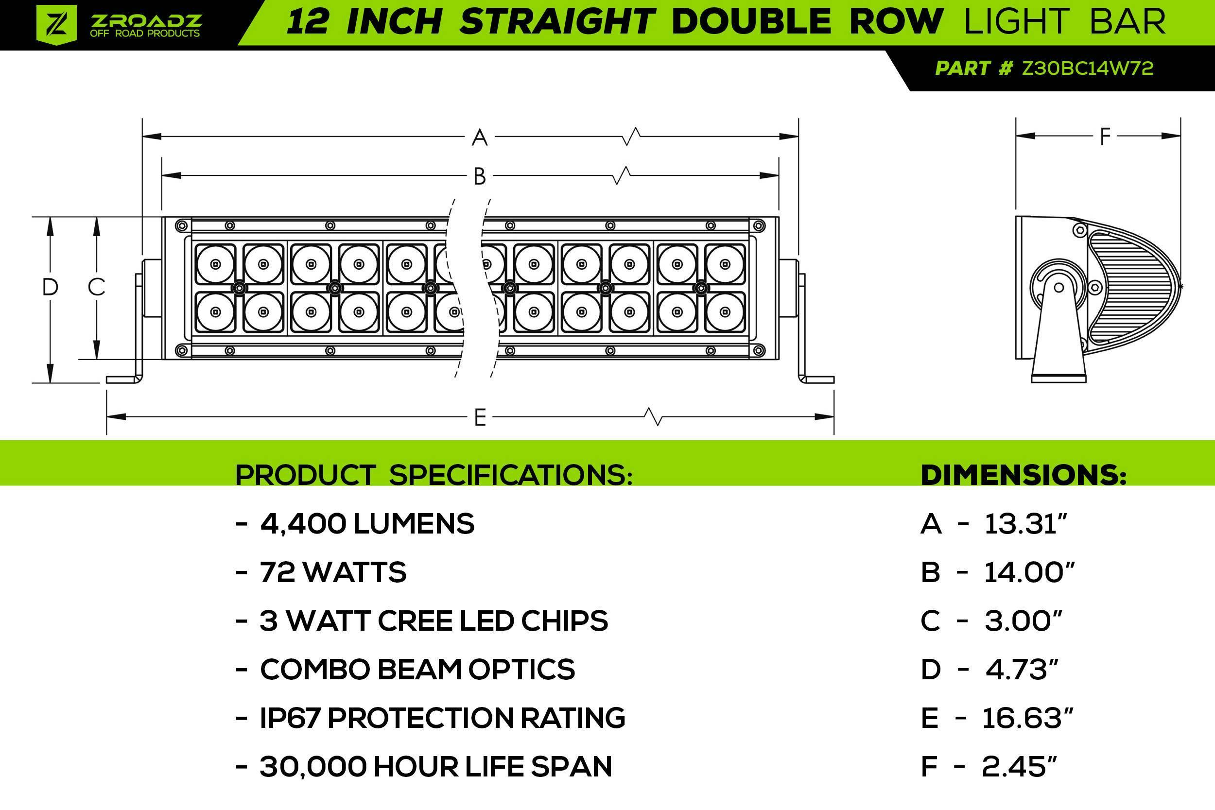 - [2] 12 Inch Zroadz Led Straight Double Row Light Bars Included