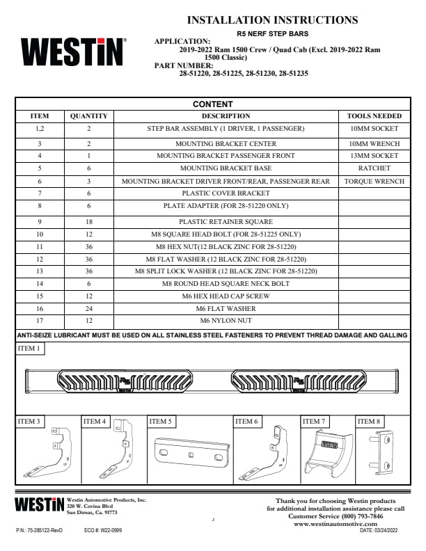 Westin R5 Nerf Step Bars have 5 inch wide step area with a unique molded polymer step pad design. R5 Nerf Step Bars are rocker panel mounted and include injection molded bracket covers for a full and stylized appearance. R5 LED Light Kit upgrade is available, sold separately.