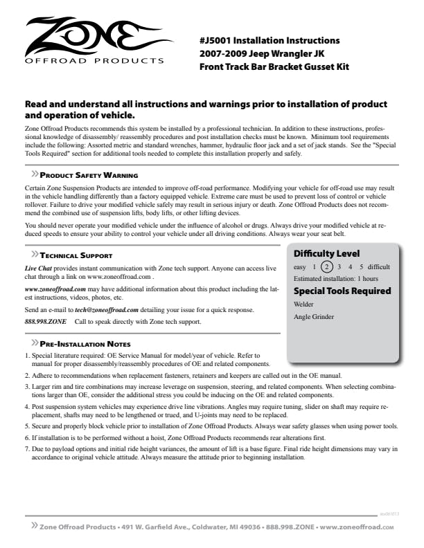 - Weld-on gussets reinforce and prevents catastrophic failure of weak factory track bar mount