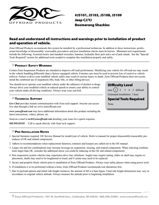 - Can be used front/rear on YJ for 0 lift, can be used rear only on CJ for 1/2 lift